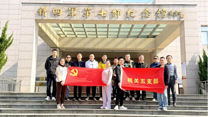 全体党员在新四军第七师纪念馆,通过历史文物、图片影像,深入了解了第七师的组建背景、发展历程及敌后斗争事迹,深刻感受到将士们信念坚定、不畏强敌、英勇奋战、服务人民的“铁军精神”。在简朴的师部旧址,大家体会到革命先辈艰苦朴素、联系群众的优良作风。